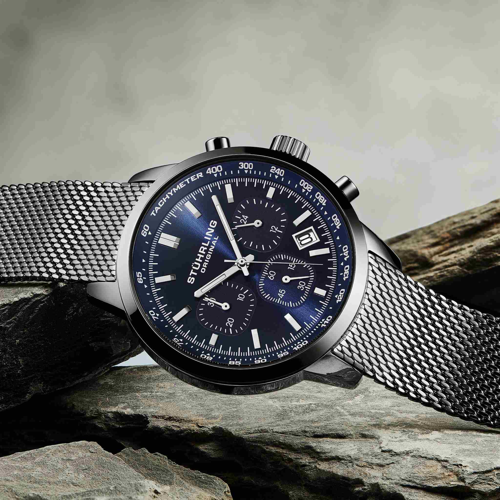 TheTurbine 4015 is a 44mm chronograph that boasts a sporty yet sophisticated look, featuring a striking dial with subdials for tracking time intervals, and a tachymeter scale for measuring speed. The bezel's polished shark teeth edging provides a tactile and visual appeal, while the stainless steel mesh bracelet enhances the watch's durability and comfort.