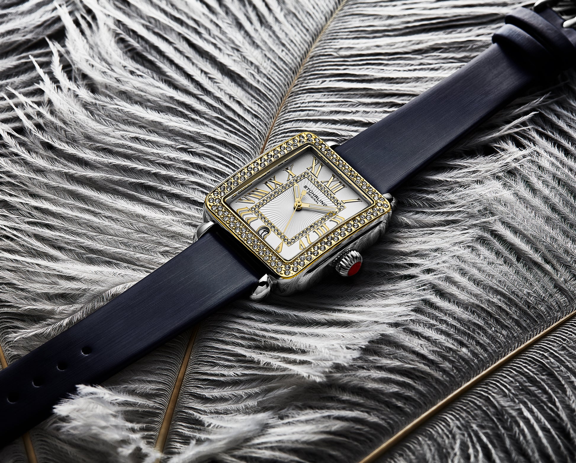 · A shimmering mineral crystal adorned with a crystal-studded bezel for a touch of brilliance.