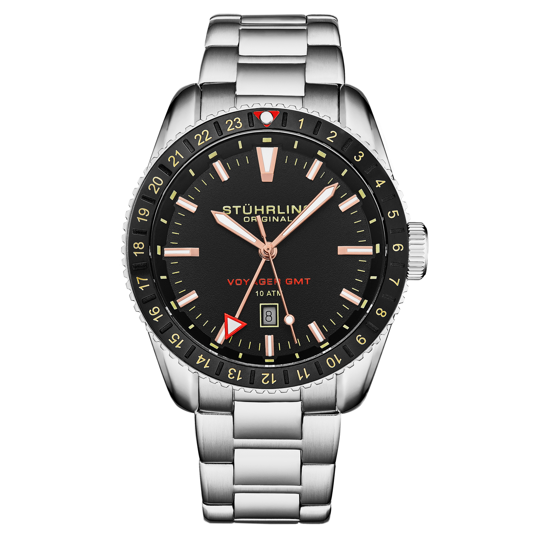 With 10 ATM water resistance, a stainless steel screw-down caseback, and a robust rotating bezel, the Voyager GMT is built to handle the demands of daily wear and exploration.