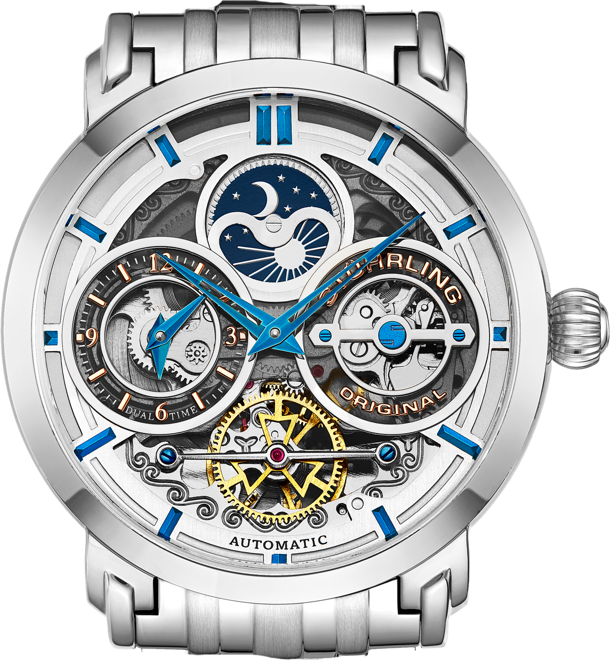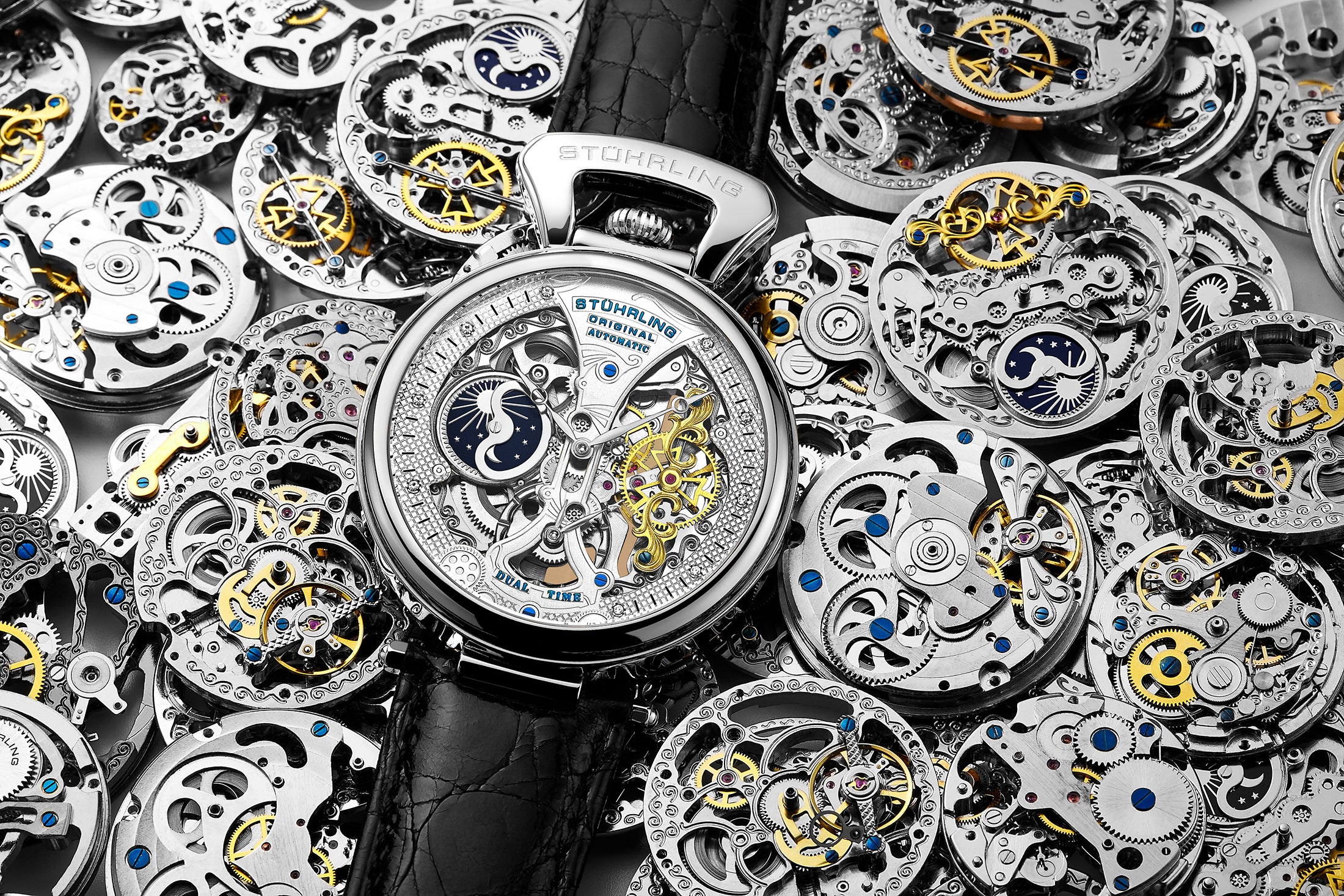 The skeleton dial removes the barrier between art and engineering. With the movement fully exposed, every gear, spring, and balance wheel becomes part of the design — watchmaking elevated to sculpture.