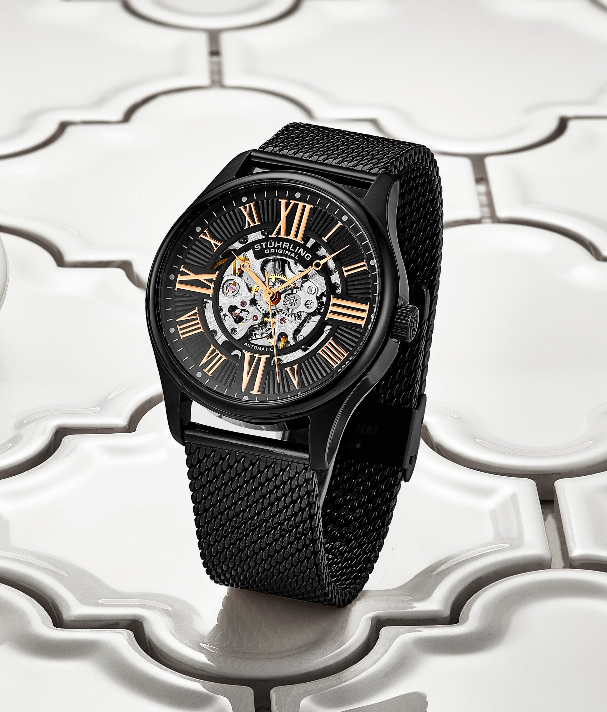 Guilloche-like Stamped Lined Design Skeletonized Dial