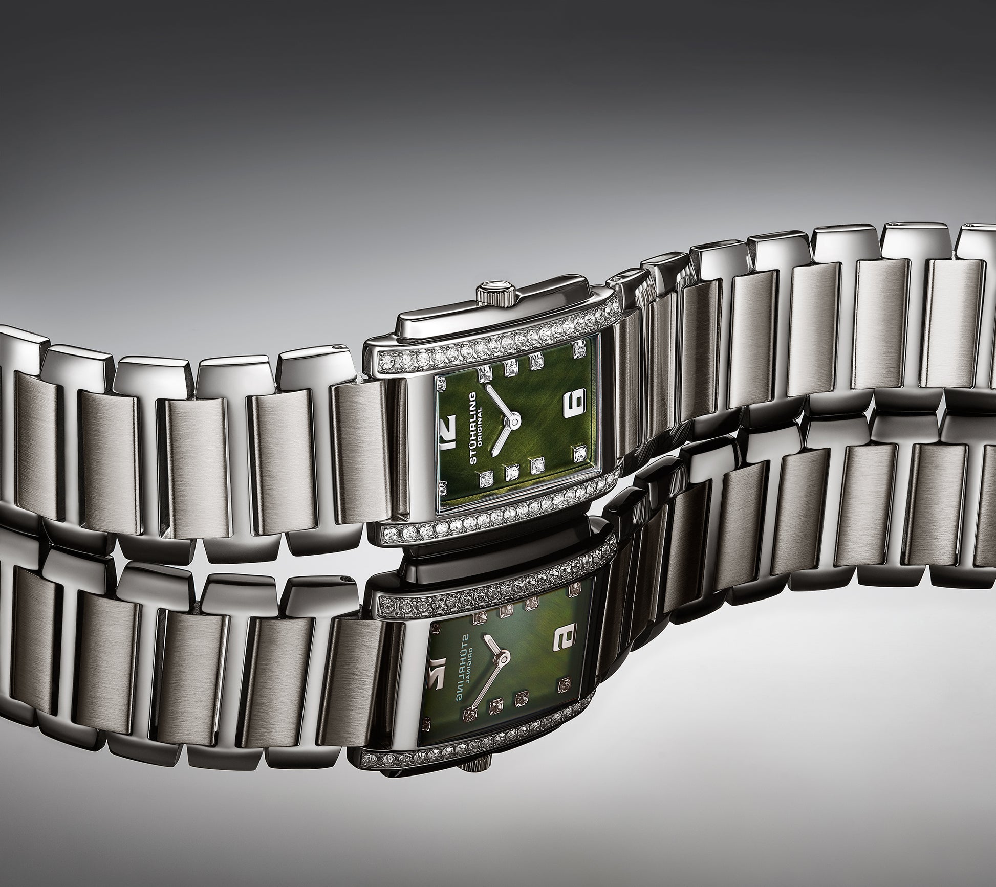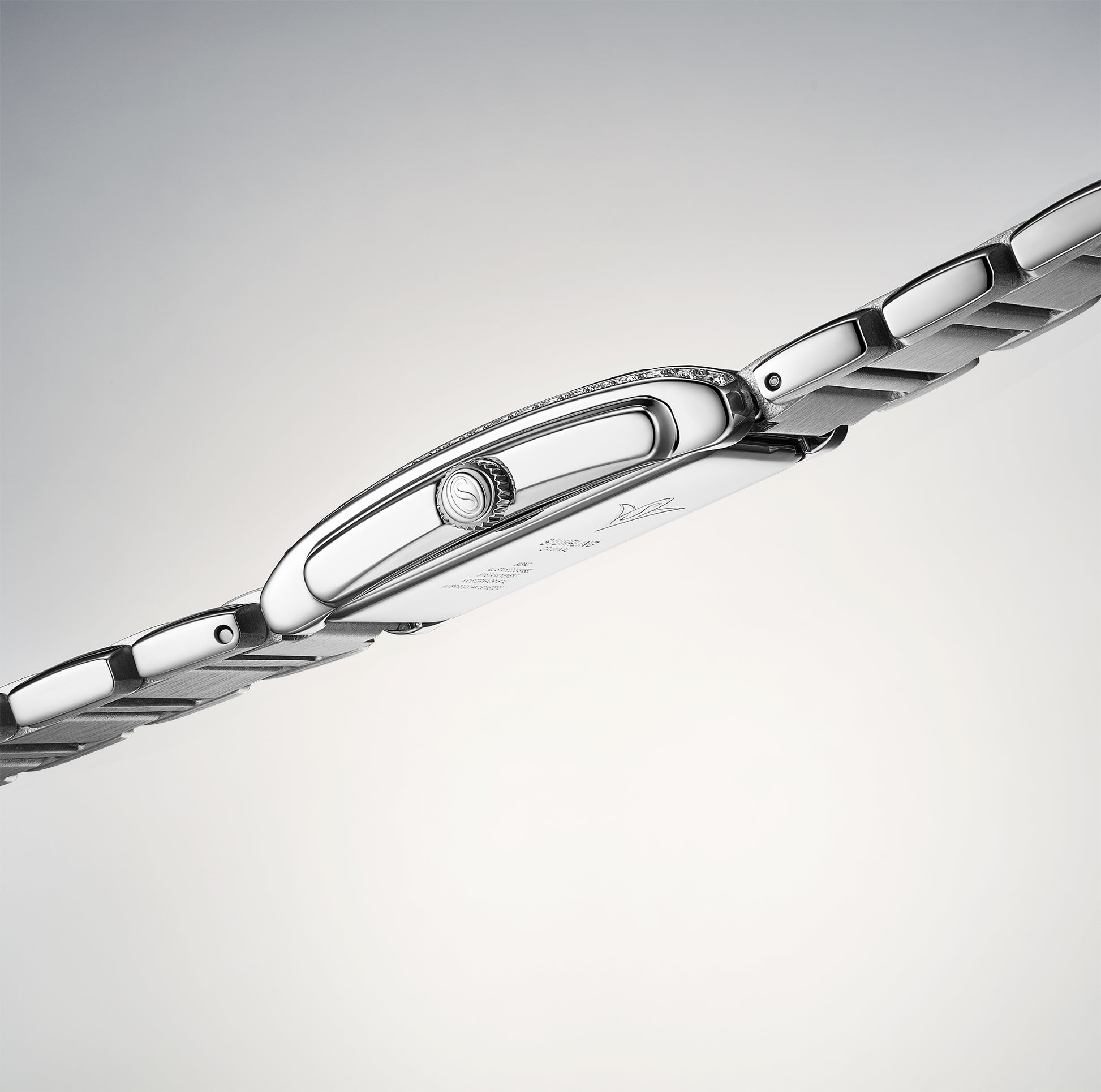 Elegant clarity meets sculptural design in the Serafine 4089 — a timepiece that radiates light with quiet confidence. With its softened rectangular silhouette and luminous dial, Serafine reflects a refined perspective on feminine timekeeping. A halo of handset crystals surrounds the polished case, while a delicate mother-of-pearl dial gleams with matching stone markers, save for the minimal 12 and 6 numerals anchoring the composition. Each variant is housed in polished stainless steel or two-tone steel, paired with a seamlessly integrated bracelet that contours the wrist with ease. The result is a dress watch designed not only to catch the light — but to carry it gracefully. With a two-hand Japanese quartz movement and secure butterfly clasp, Serafine is built for beauty, balance, and lasting presence. • Stainless steel rectangular case (28.4mm x 35.7mm) |